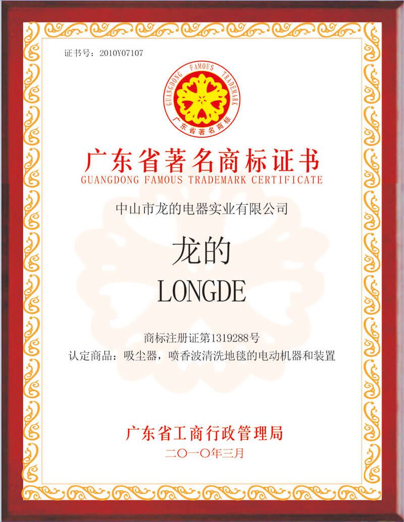 龍的吸塵器榮獲“廣東省著名商標(biāo)”,龍的電熨斗獲“國(guó)家免檢產(chǎn)品”