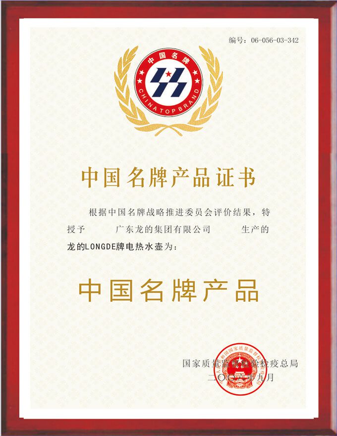 中國(guó)名牌證書(shū)-電熱水壺